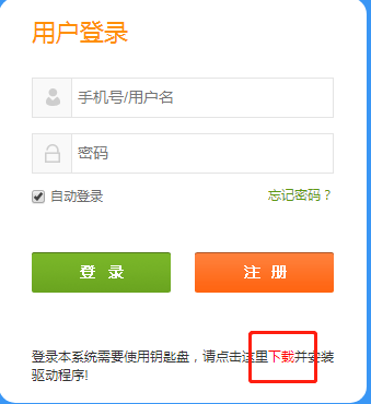 1.登录本系统需要使用钥匙盘,请点击这里下载并安装驱动程序。